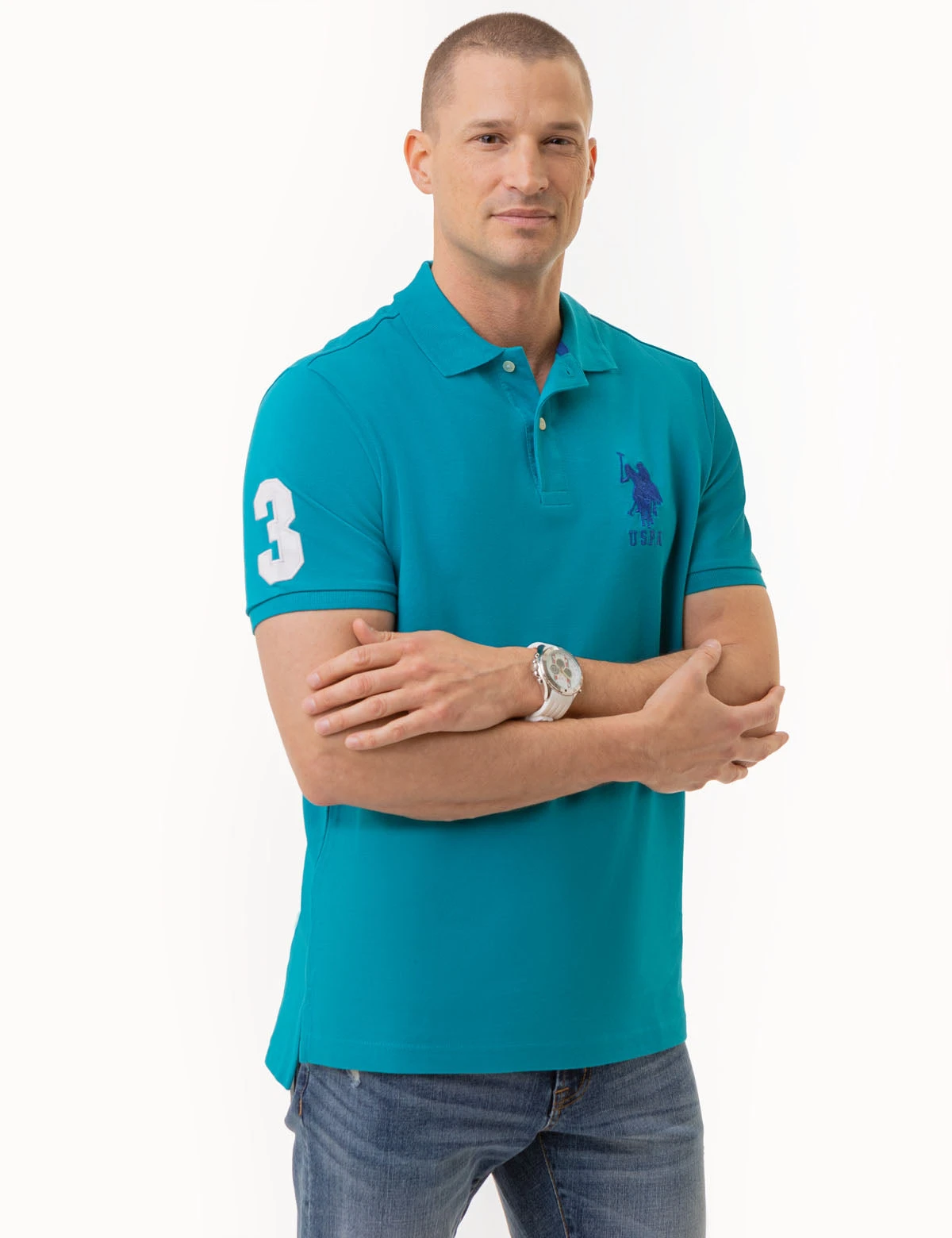 This BIG LOGO POLO SHIRT is an essential item for any modern wardrobe. Its classic collar with two-button placket and short ribbed sleeves provide elegance, while the large number three applique on the right sleeve, grand stitched logo on the upper left front, side vents, and ample silhouette create a perfect and stylish look. Model is wearing a size medium.