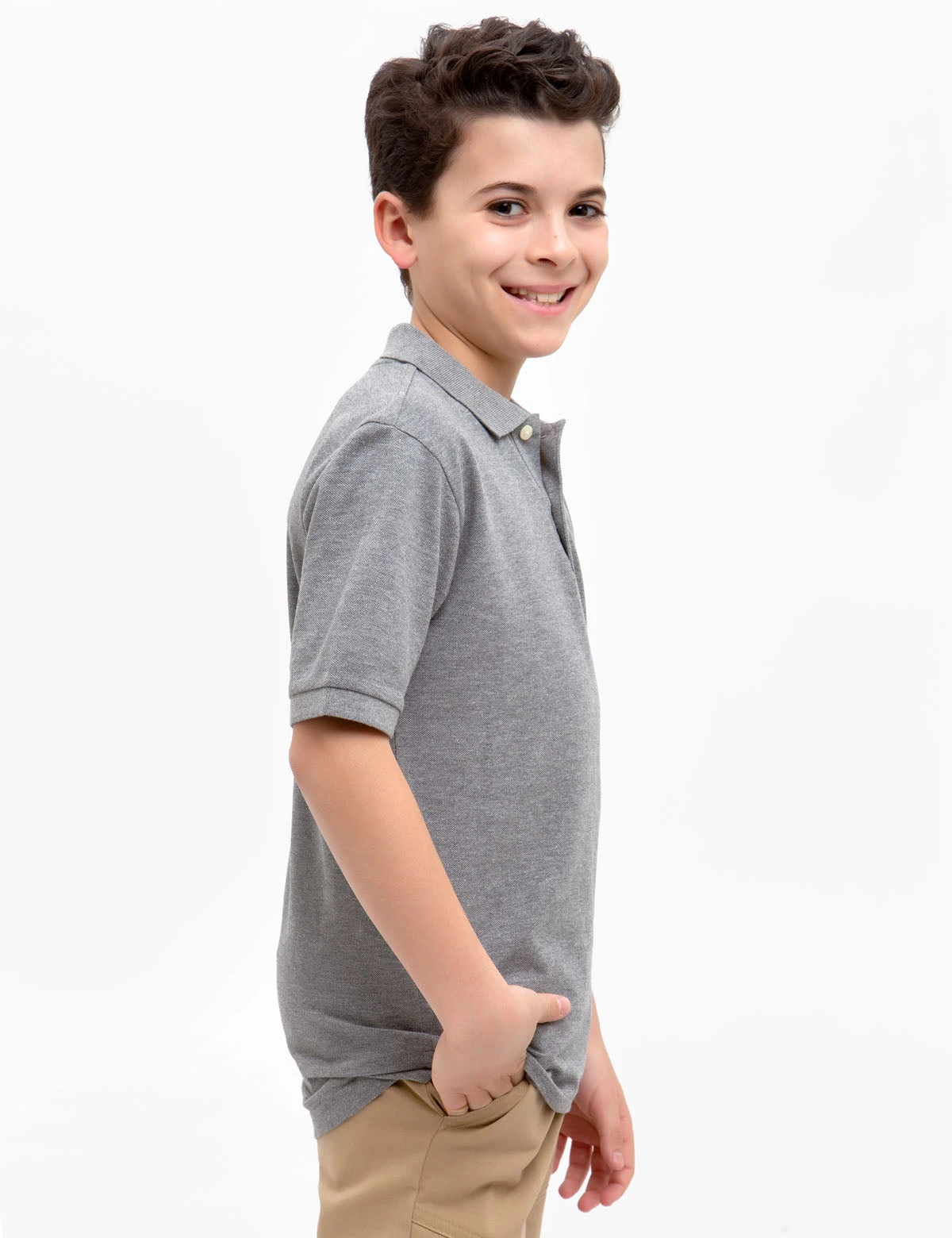 - Collar with two-button front placket.