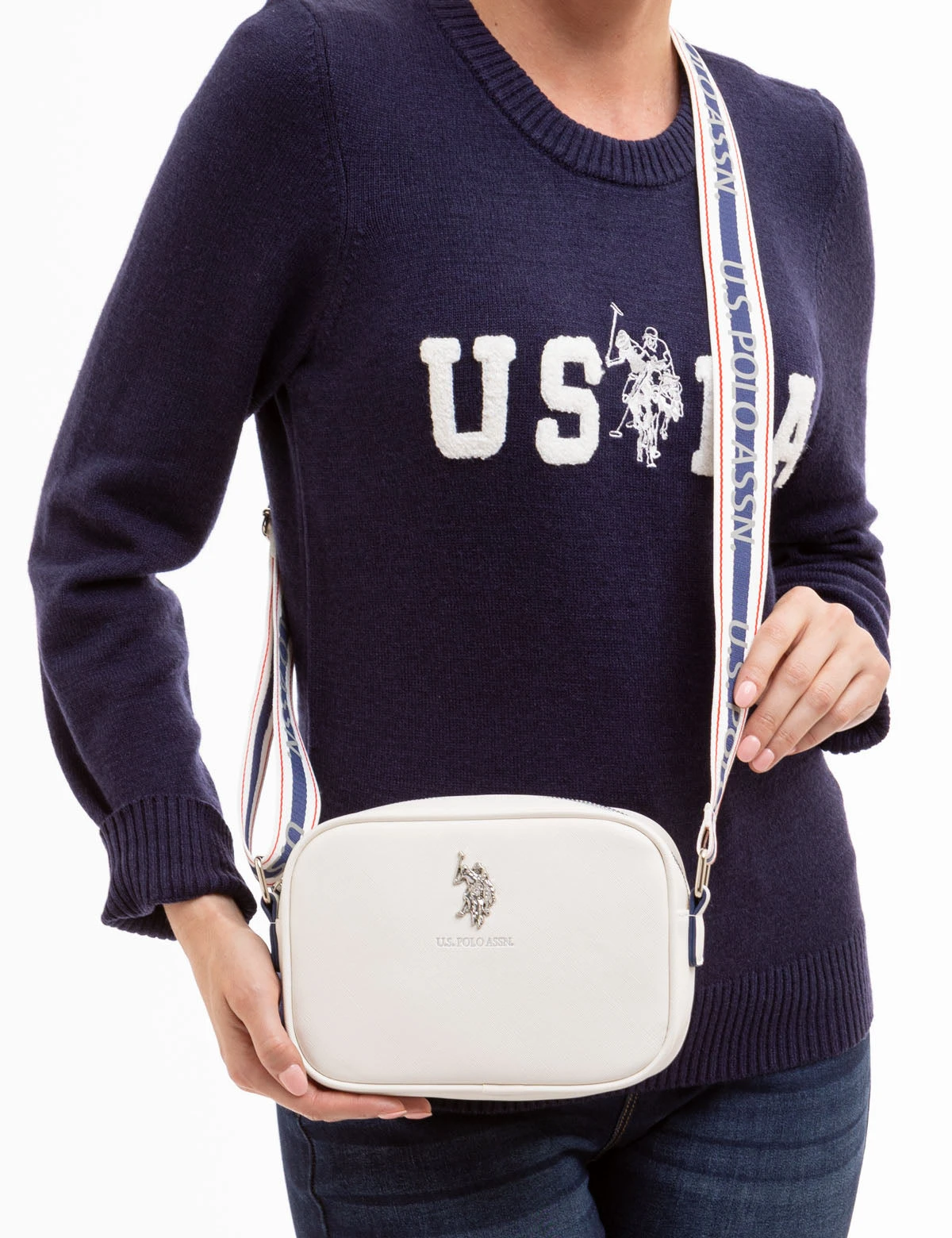 The CLASSIC ZIP CROSSBODY BAG from U.S. Polo Assn. is the perfect combination of style and function. A small crossbody bag with logo hardware and web strap, it’s ideal for anything from date nights to daily errands. This style features Saffiano PU, an interior accessory pocket and a top zip closure with a branded zipper pull. Its classic styling is durable and timeless, making this a must-have accessory.