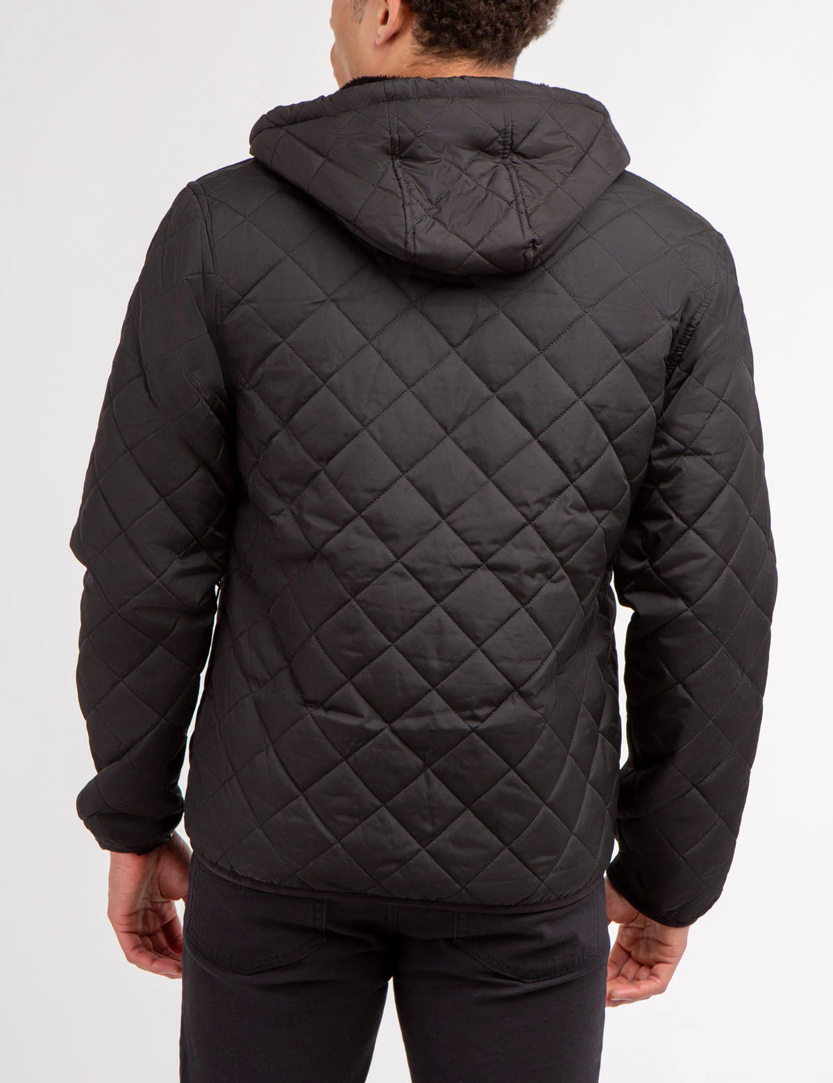 - Attached hood with drawstring pulls and fleece lining.