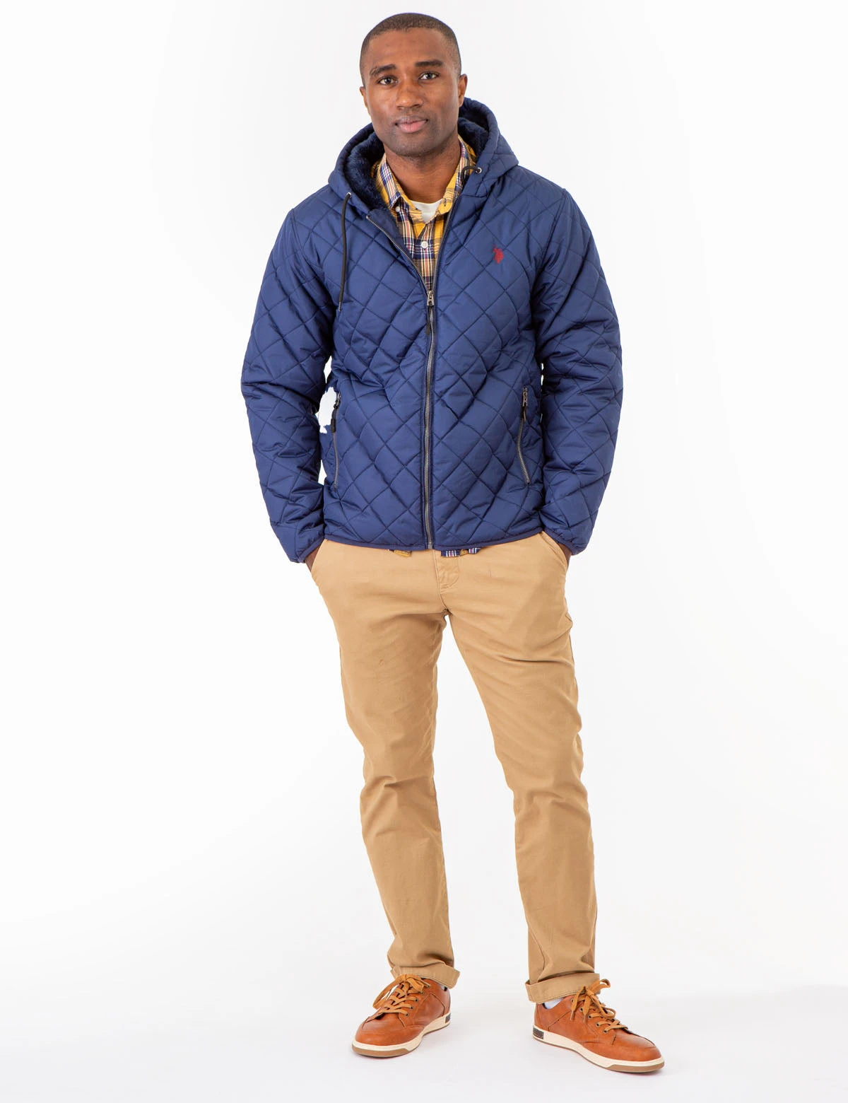 - Small embroidered logo on upper left front.