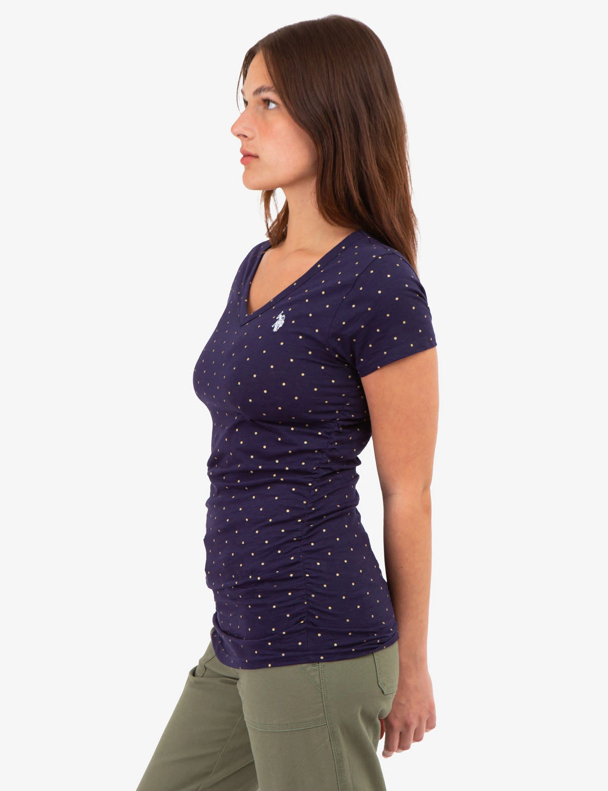 U.S. Polo Assn. DOT PRINT RUCHED SIDE V-NECK T-SHIRT