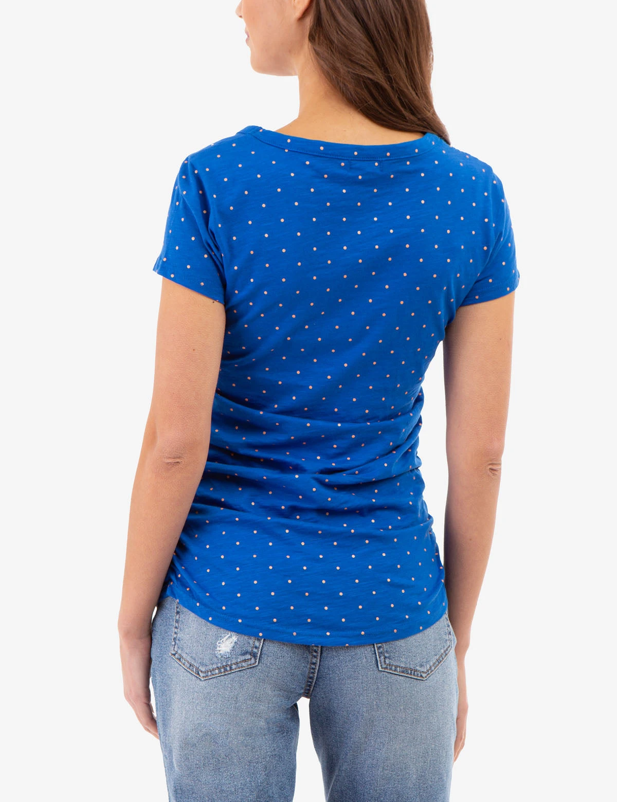 DOT PRINT RUCHED SIDE V-NECK T-SHIRT
