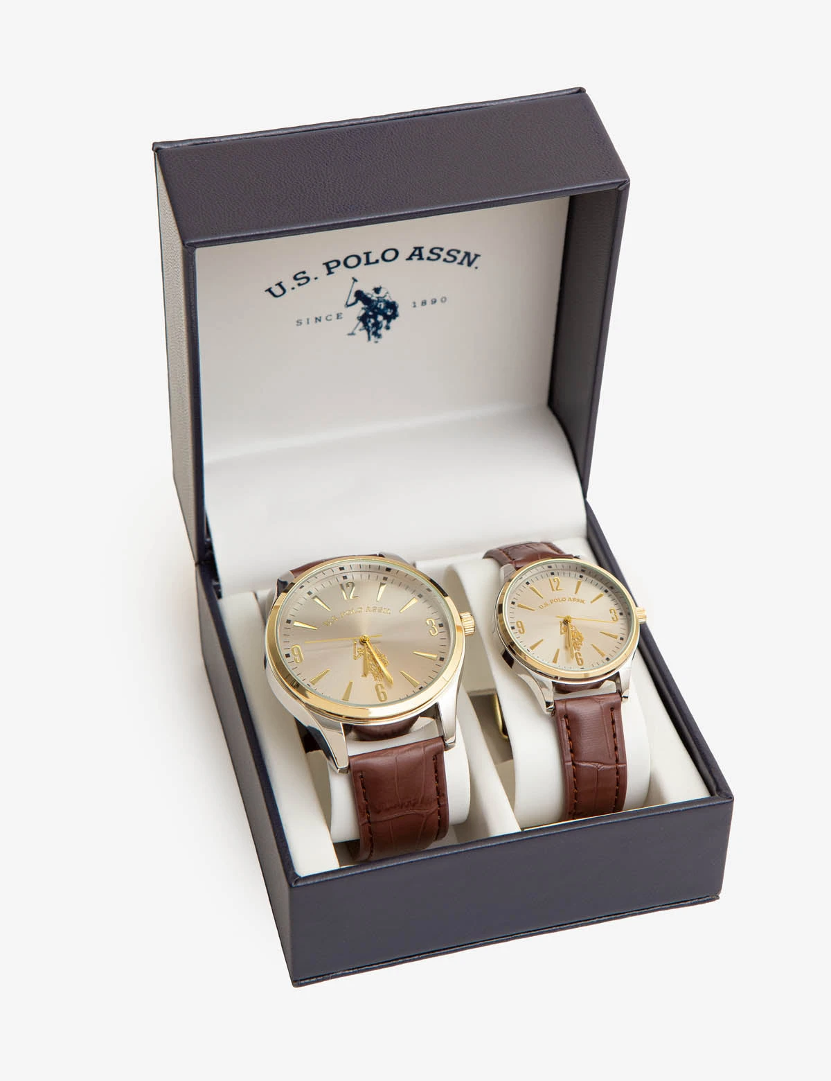 U.S. Polo Assn. HIS AND HERS BROWN STRAP WATCH SET
