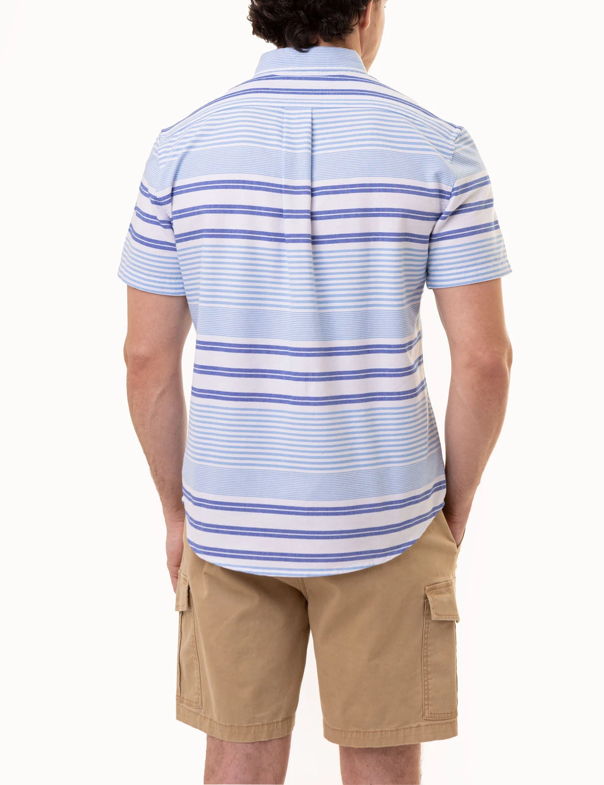 Indulge yourself in luxurious craftsmanship with this classic HORIZONTAL STRIPE SHORT SLEEVE OXFORD SHIRT. Featuring a spread collar, elegant short sleeves, and a tasteful stripe pattern, this shirt is completed with a button-down front closure, a patch pocket on the left chest with an embroidered logo, and a shirttail hem. Model is wearing a size Medium.