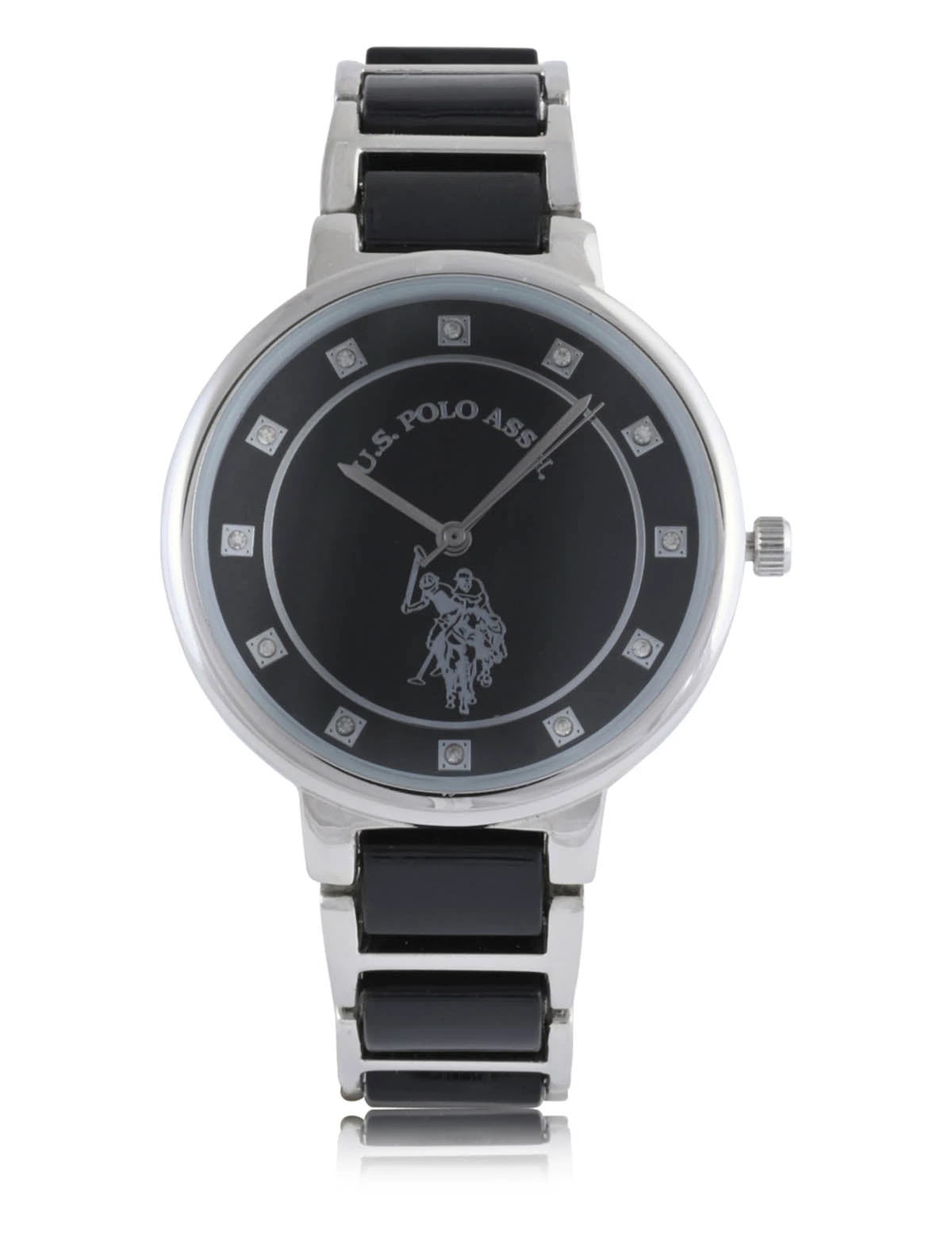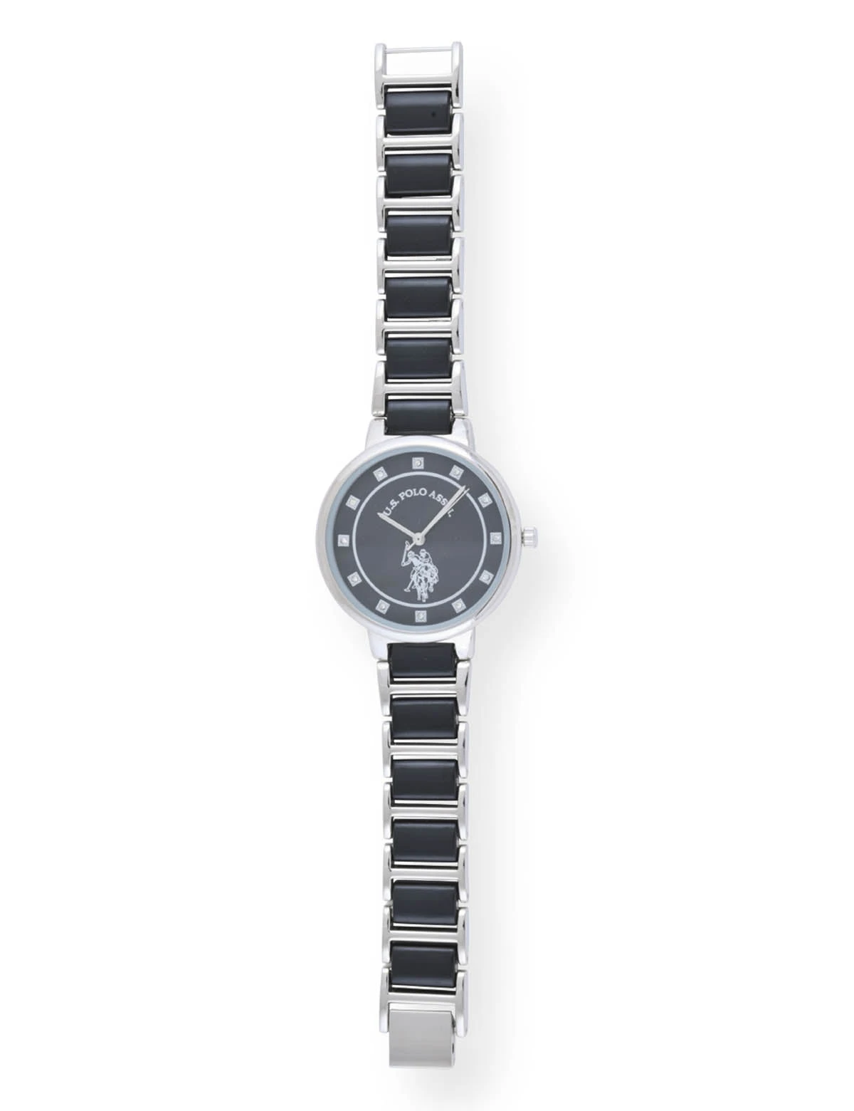 U.S. Polo Assn. LADIES BLACK LINK WITH SILVER ACCENT WATCH