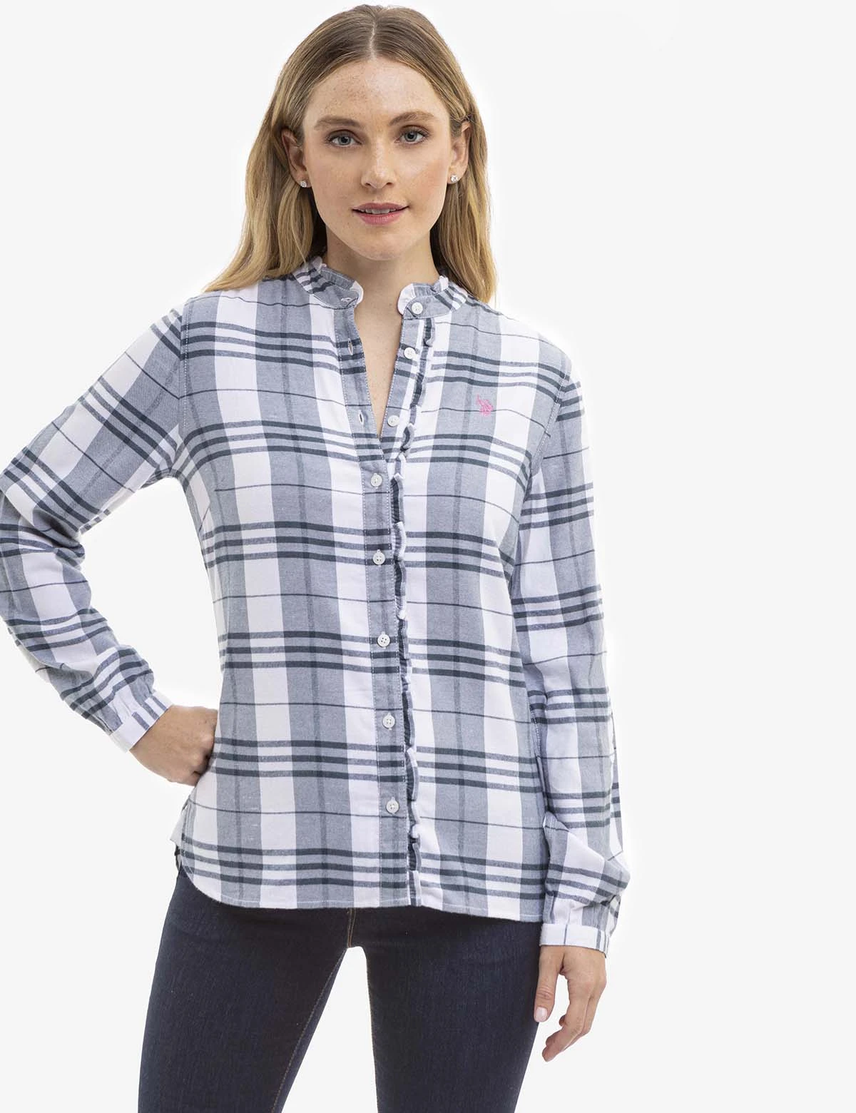 U.S. Polo Assn. LONG SLEEVE RUFFLE PLAID TOP