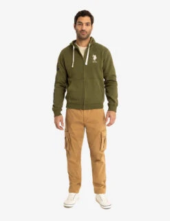 - Small contrast stitched logo on upper left front.