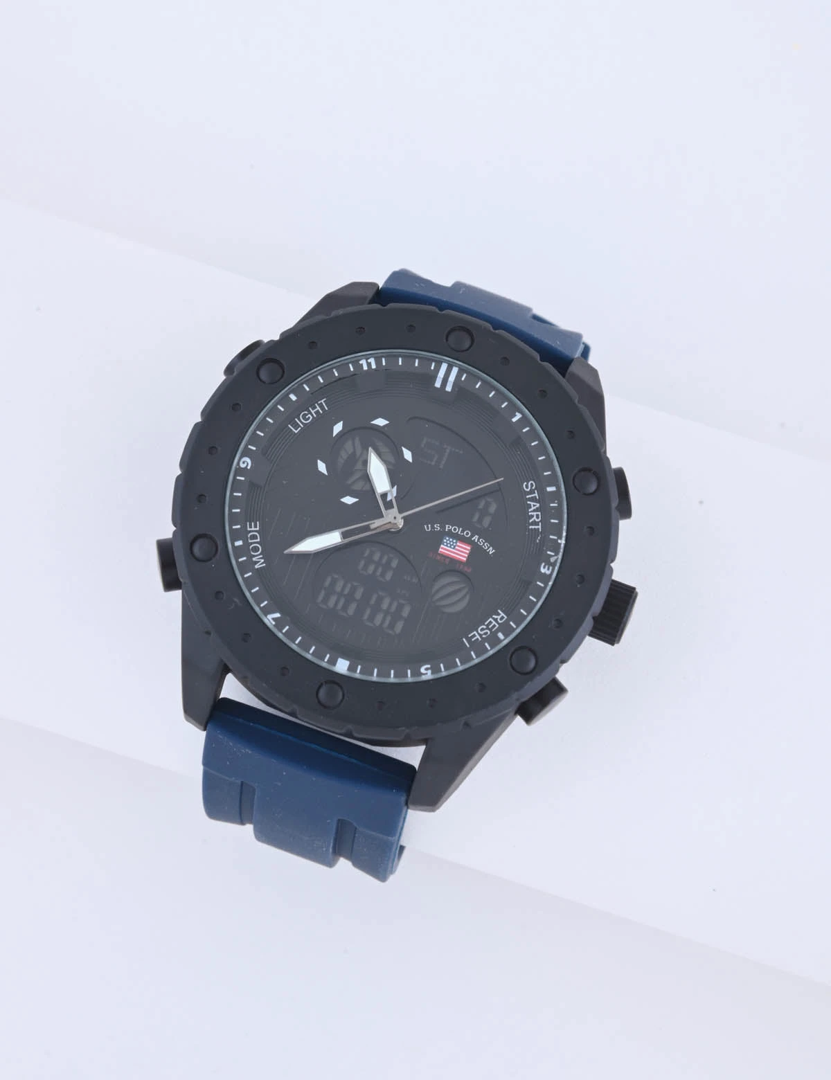 U.S. Polo Assn. MEN’S BLUE STRAP WITH BLACK BEZEL ANA DIGI WATCH