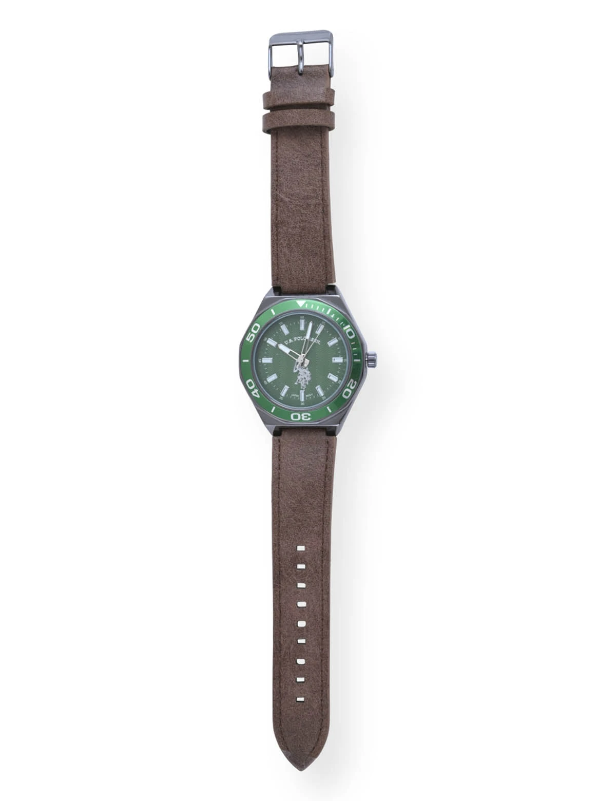 U.S. Polo Assn. MEN’S BROWN STRAP WITH GREEN DIAL ANALOG WATCH