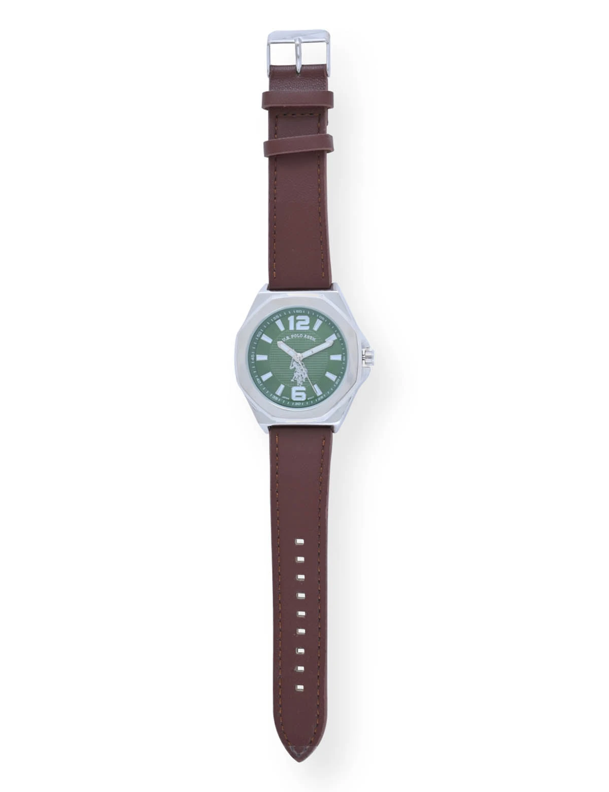 U.S. Polo Assn. MEN’S BROWN STRAP WITH SILVER CASE ANALOG WATCH