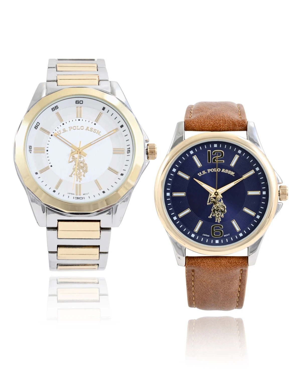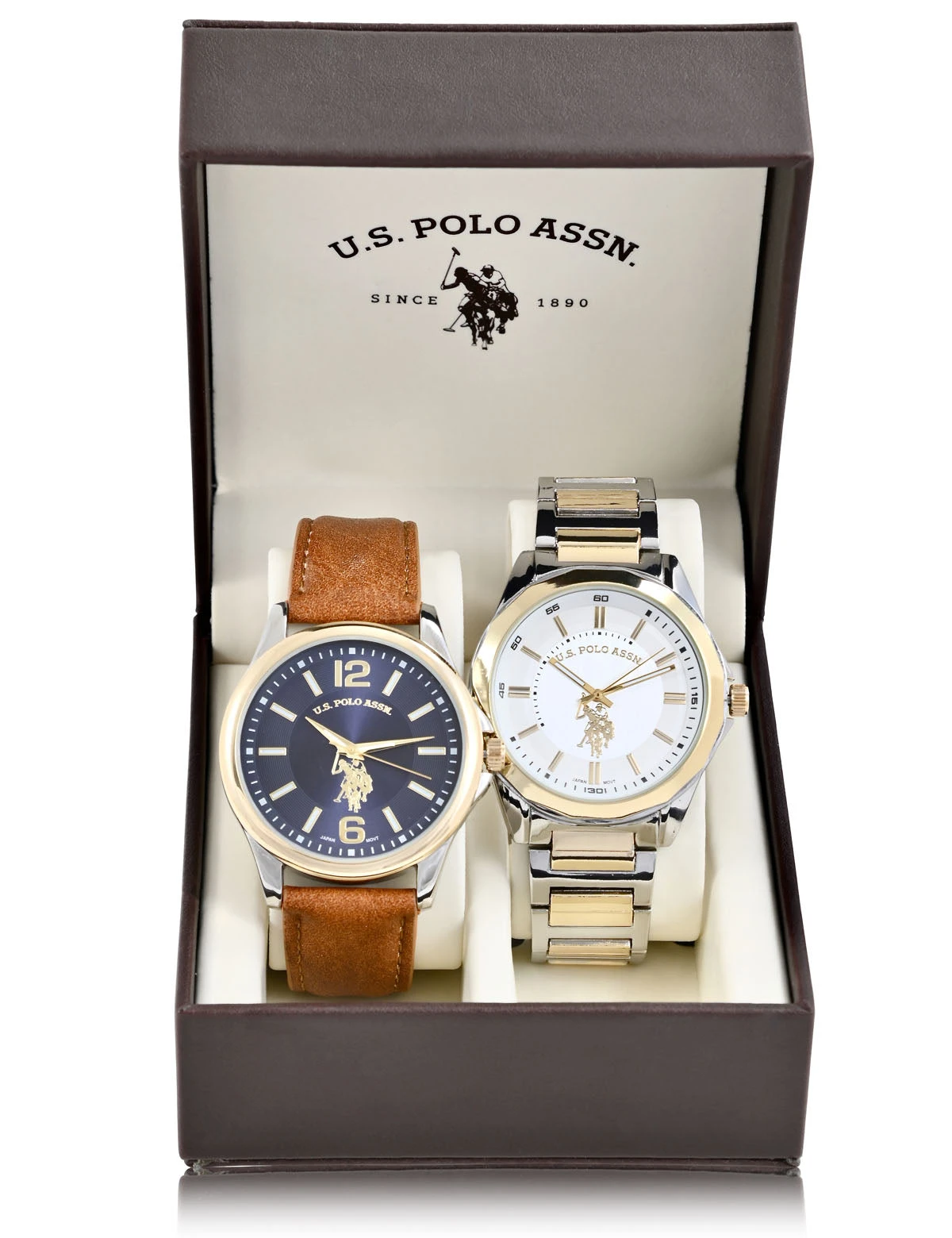 U.S. Polo Assn. MEN’S LINK AND BROWN STRAP WATCH SET