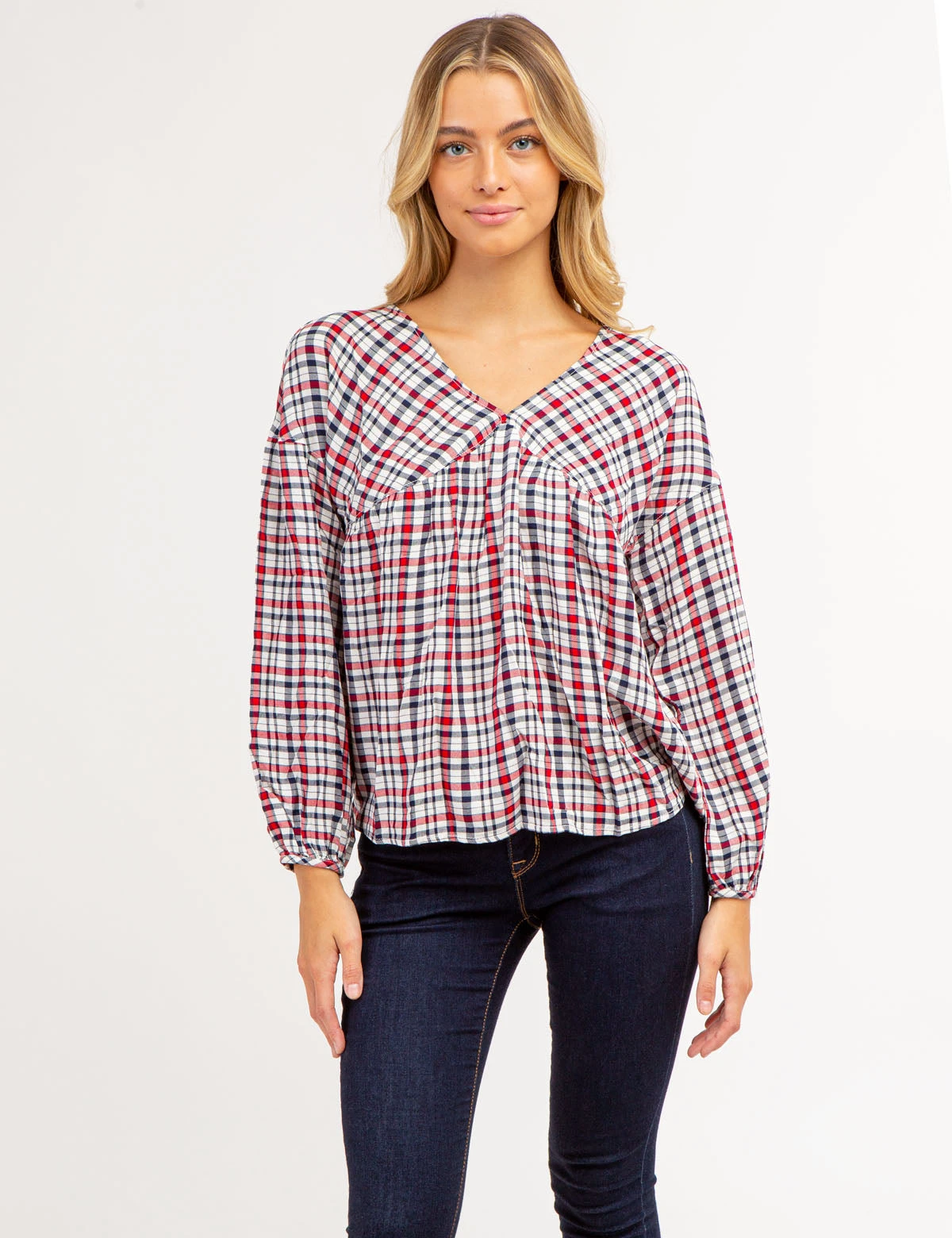 PLAID POETIC V-NECK TOP