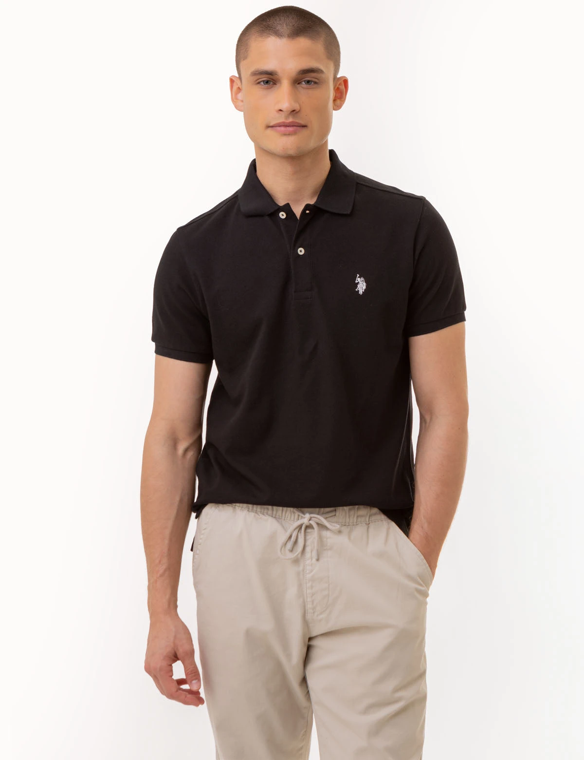 Our SLIM FIT SOLID PIQUE POLO SHIRT is an essential staple for your everyday wardrobe. Featuring a classic collar, two-button placket, short sleeves with ribbed cuffs, and our iconic embroidered logo to the top-left side, this piece is sure to make a sophisticated addition to any ensemble. Finishing touches include vent detailing at the hem. Model is wearing a size medium.