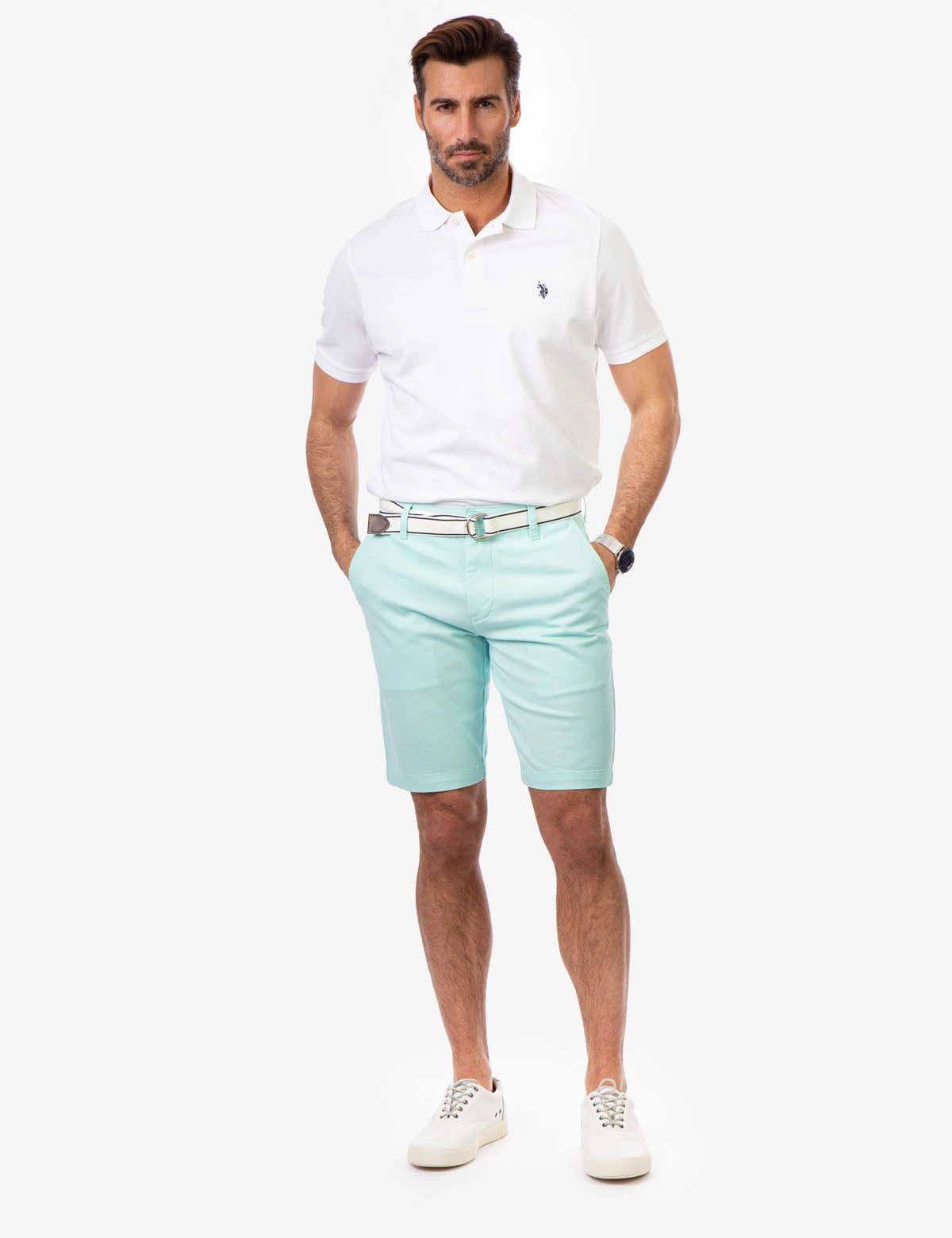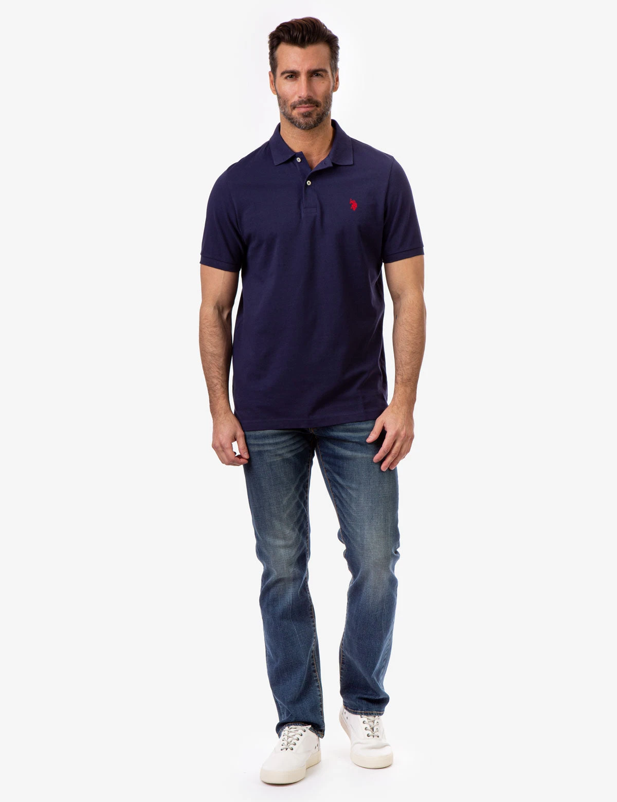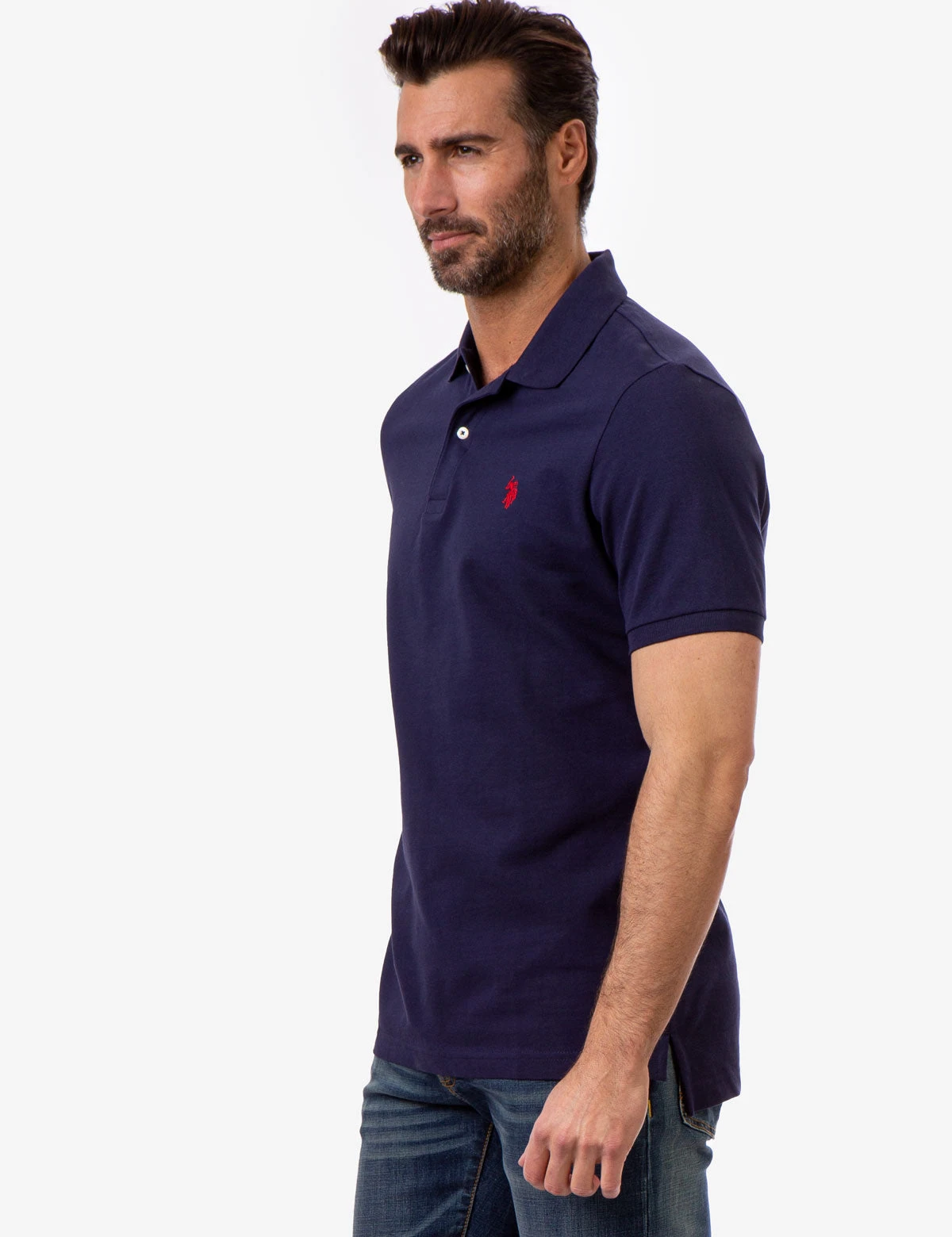 Reach for effortless style and comfort with our soft, deep-dyed short sleeve PIQUE SMALL LOGO POLO SHIRT, embellished with our signature logo. Featuring a universally wearable modern fit, this design presents a classic collar with two-button front placket, finished with a small embroidered logo on the upper left front in timeless polo shirt construction. Model is wearing a size medium.