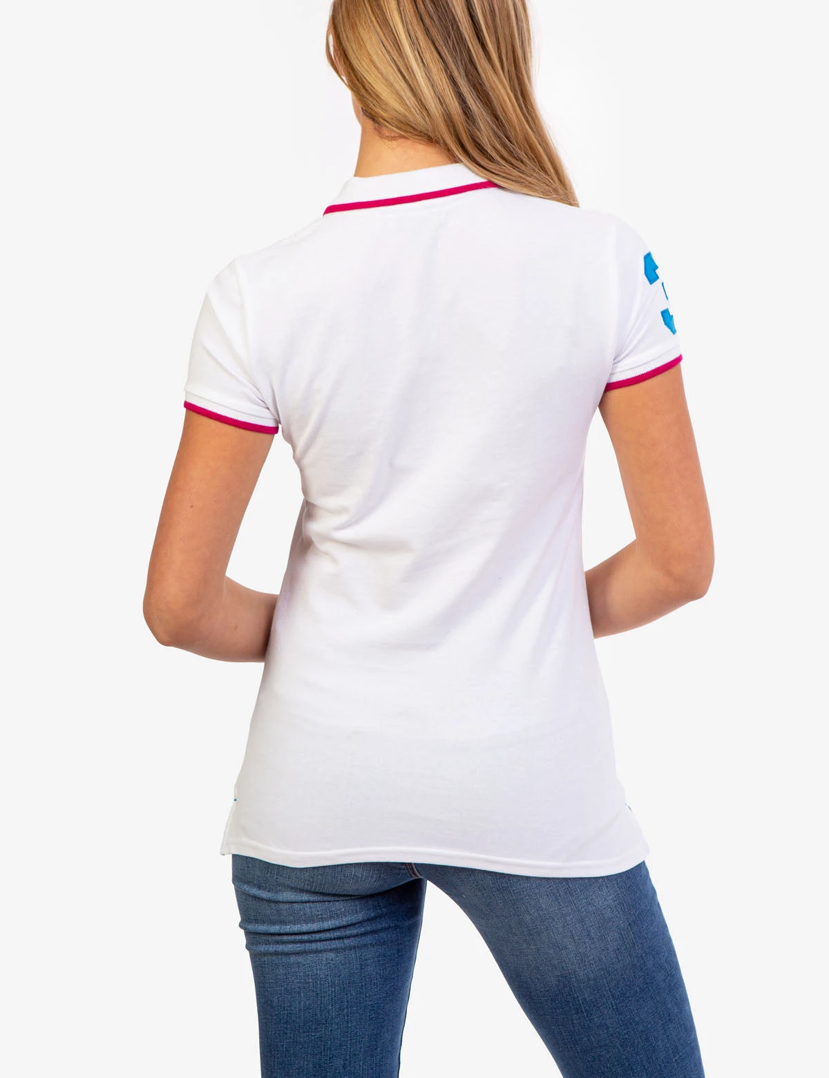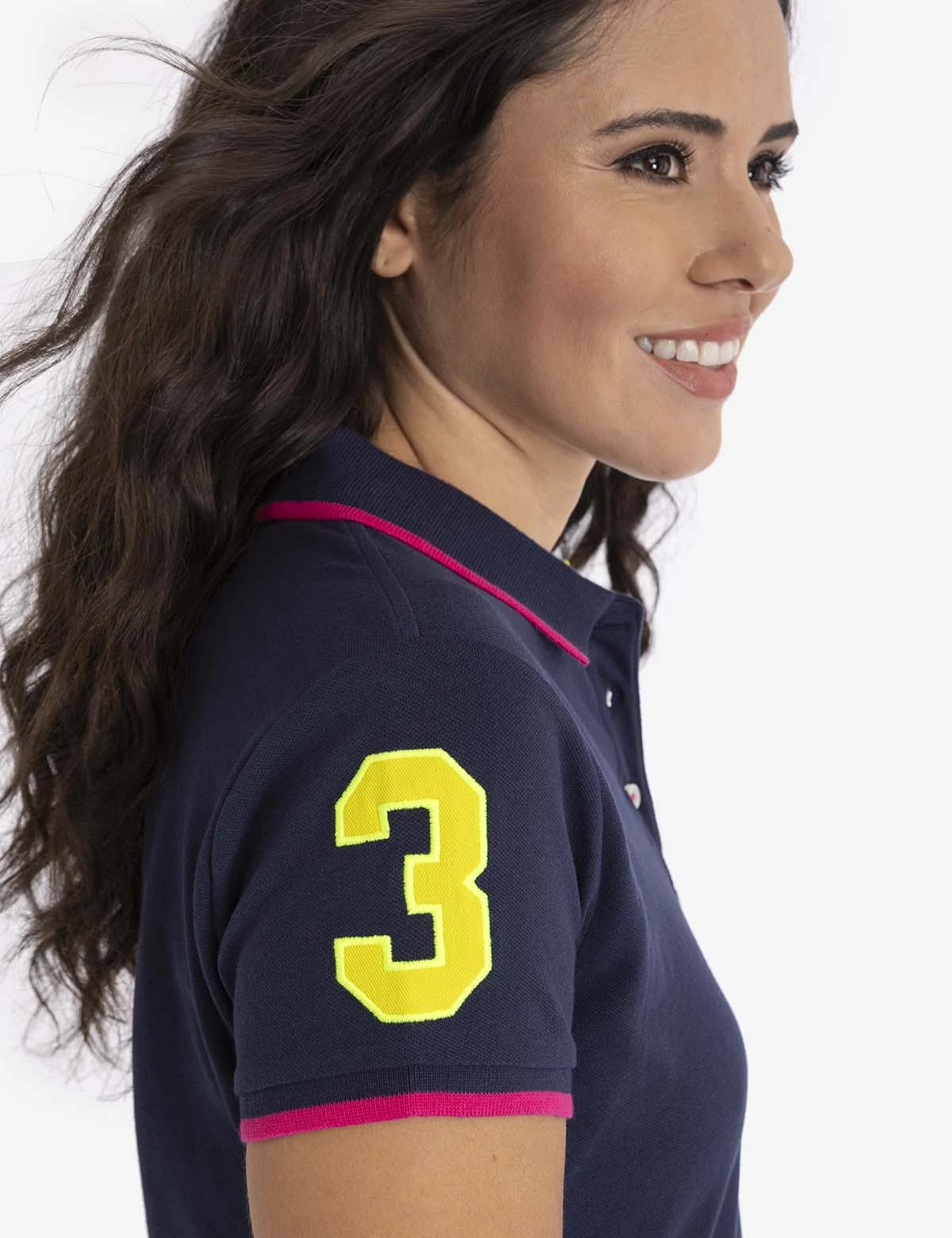Our TRIPLE CROWN POLO SHIRT embodies timeless design, evoking a classic yet modern style. Designed with a regular fit, straight hemline, vents at the side, ribbed tipped collar and short sleeves, this wardrobe staple is a must-have. This item also features a distinct contrast three-button placket, large embroidered logo at the upper right and an embroidered “three” patch on the side sleeve. Model is wearing a size small.