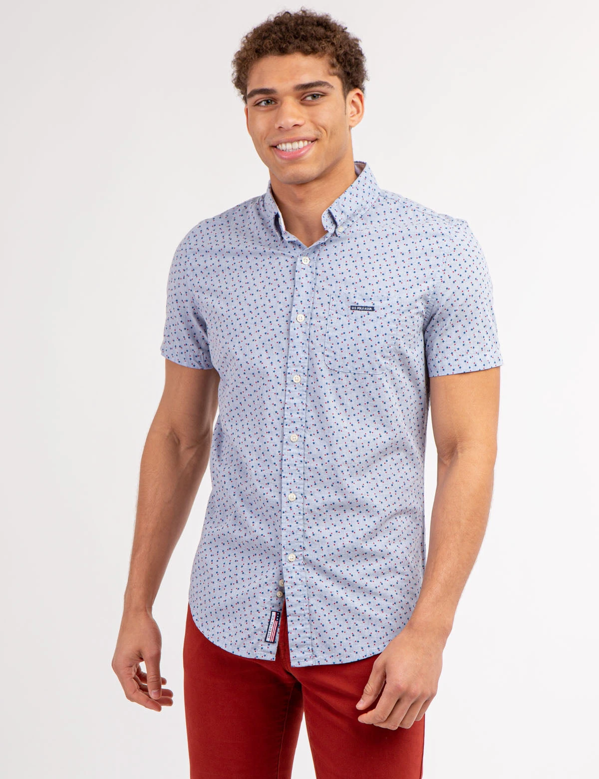 U.S. Polo Assn. STAR PRINT POPLIN SHORT SLEEVE SHIRT WITH POCKET