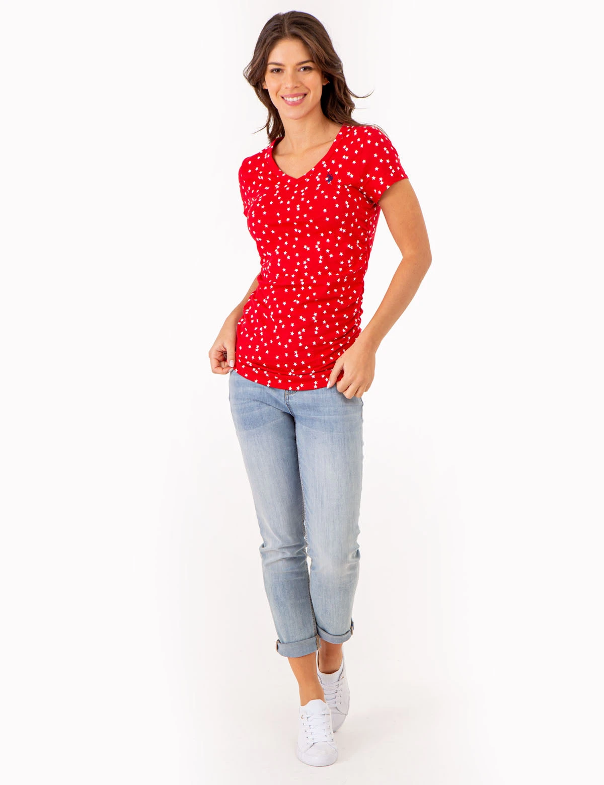 U.S. Polo Assn. STAR PRINT RUCHED SIDE V-NECK T-SHIRT