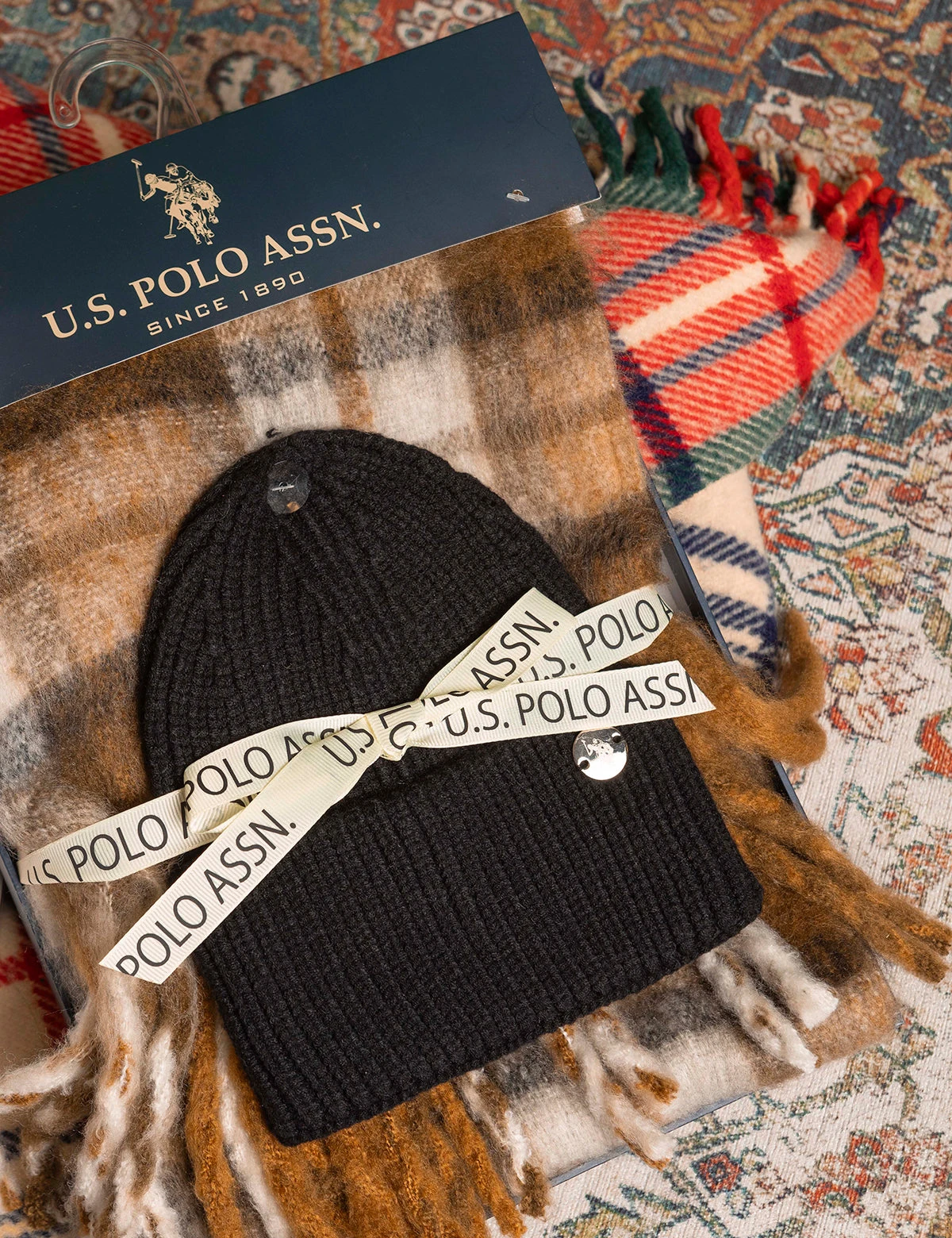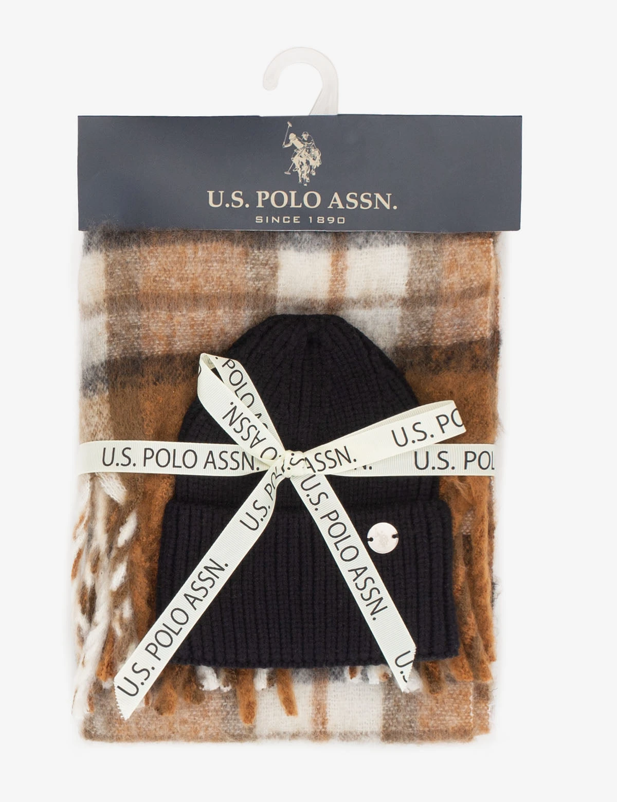 U.S. Polo Assn. WOMENS BEANIE AND PLAID SCARF SET