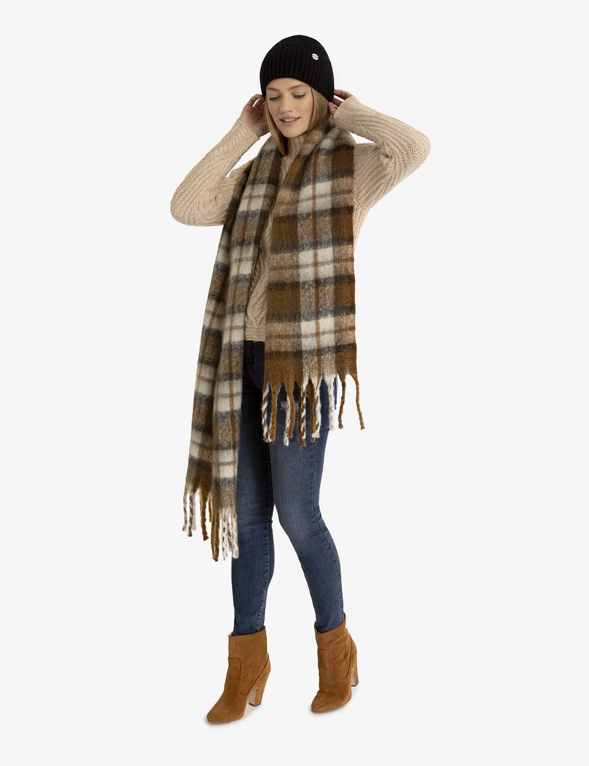 WOMENS BEANIE AND PLAID SCARF SET