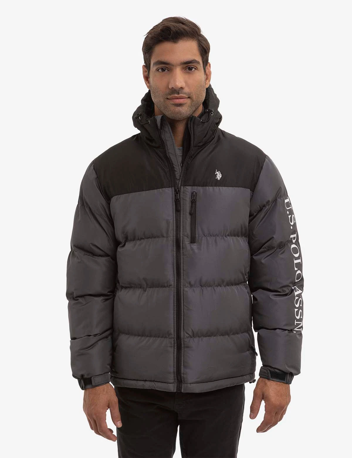 U.S. Polo Assn. WORDMARK COLORBLOCK HOODED PUFFER JACKET